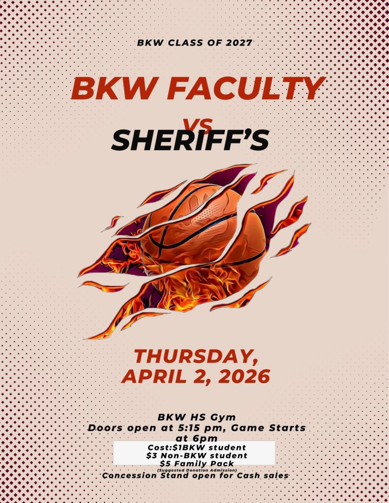 On Thursday, April 2, BKW faculty will take on members of the Albany County Sheriff’s Office in a fundraising basketball game to benefit the Class of 2027. Check out the flyer below for additional details.