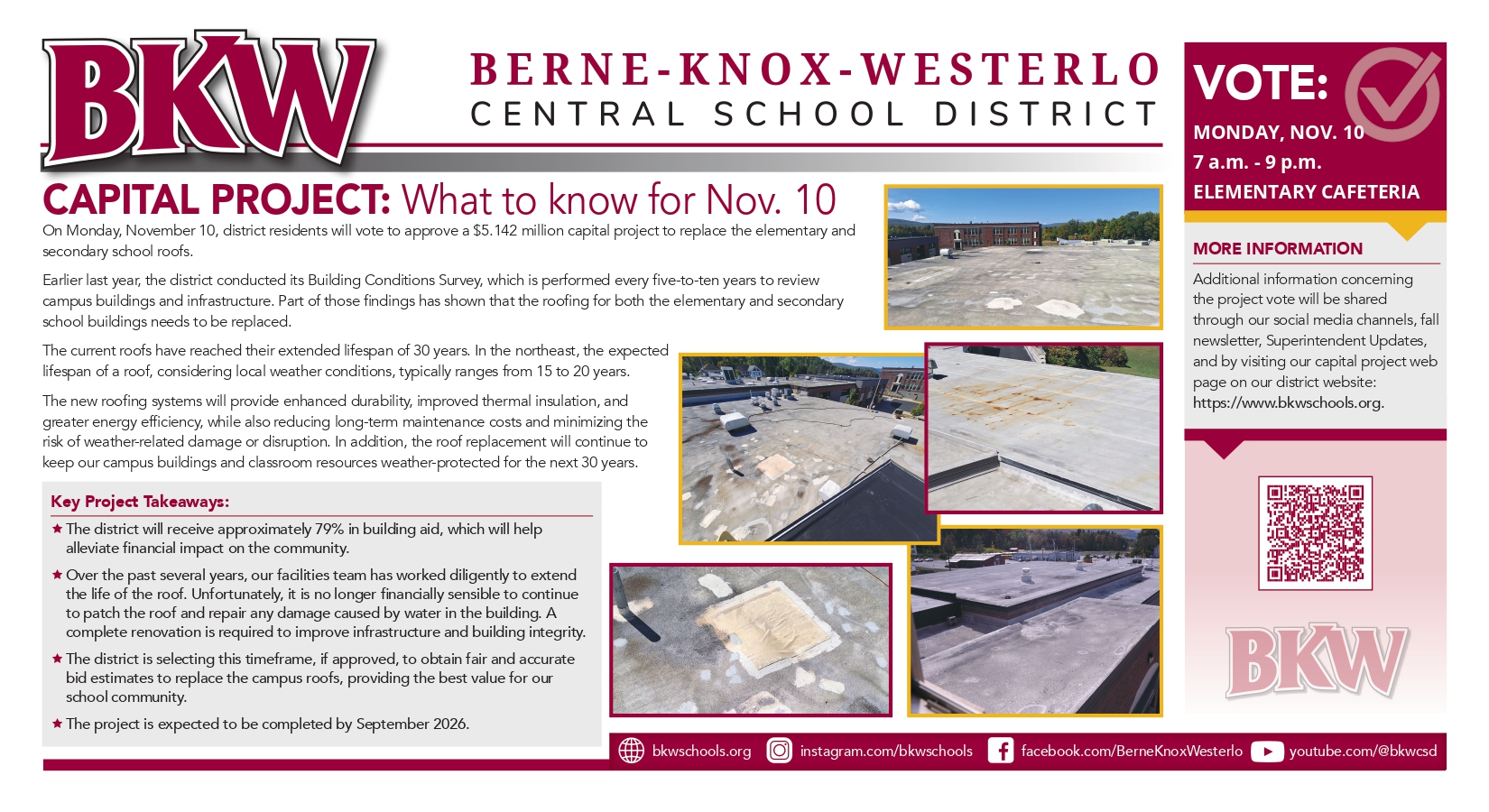 We are also sharing this key piece of information to keep our community informed about the current state of the elementary and secondary school roofs and why the project is important to our district, students, and families.